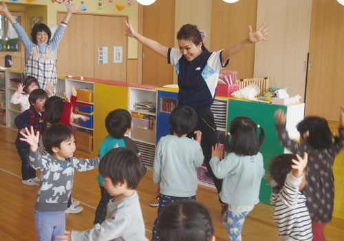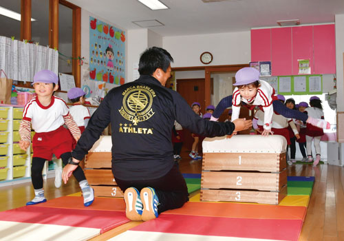身体能力向上のため、ボールを使って楽しく体を動かします